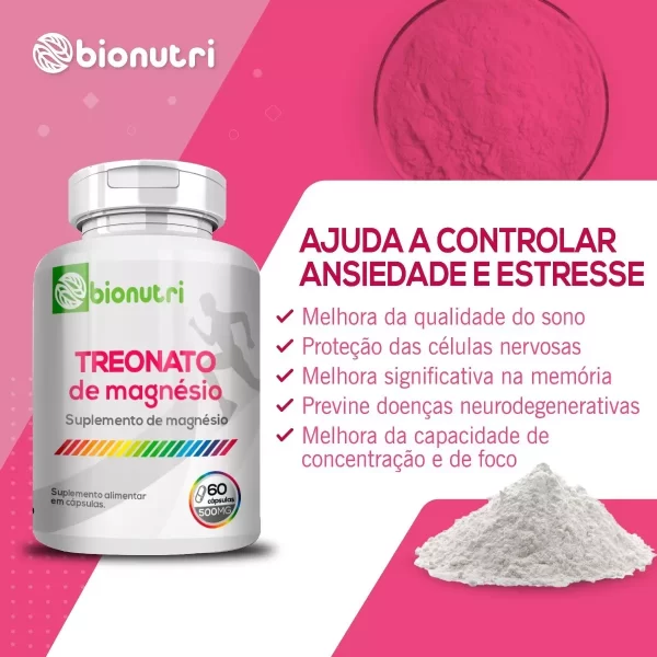 O Magnésio Treonato penetra eficazmente a barreira hematoencefálica, elevando os níveis de magnésio no cérebro. Isso promove a função neuronal, melhora a sinapse e a plasticidade cerebral, regula neurotransmissores e pode melhorar a qualidade do sono e reduzir a ansiedade.